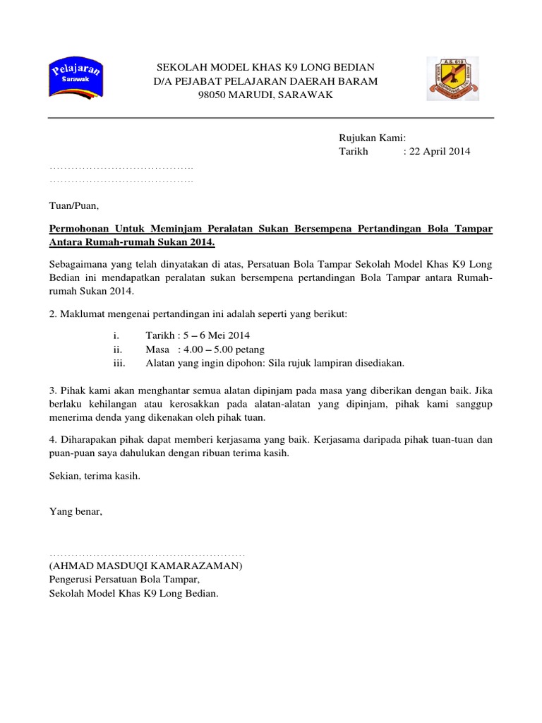 Surat Rasmi Permohonan Meminjam Peralatan Sukan Kecemasan Q Otosection